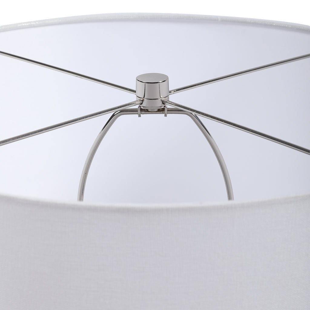 Material: Ceramic table lamp showcases vibrant shades of cobalt and aqua that transition into a subtle ombre toned light blue. Polished nickel details and crystal accents create an elegant and sophisticated look.