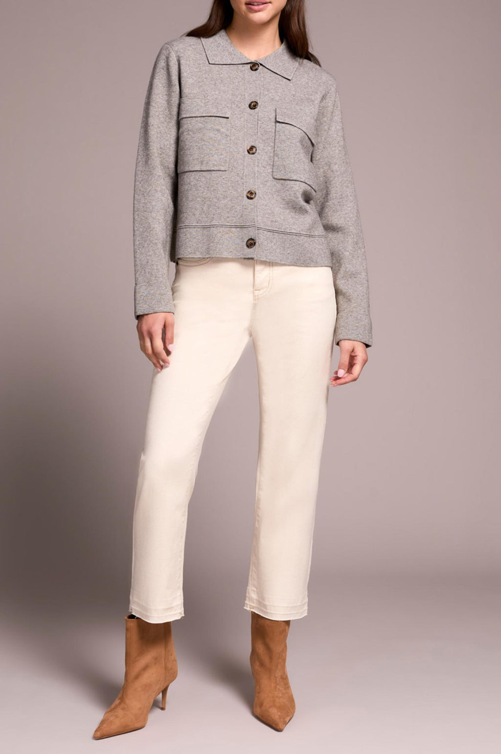 Timeless and endlessly wearable, The Vivienne in Grey offers a refined take on everyday knitwear. With its structured collar, modern patch pockets, and warm neutral hue, it’s the kind of cardigan that moves seamlessly from office hours to off-duty weekends.