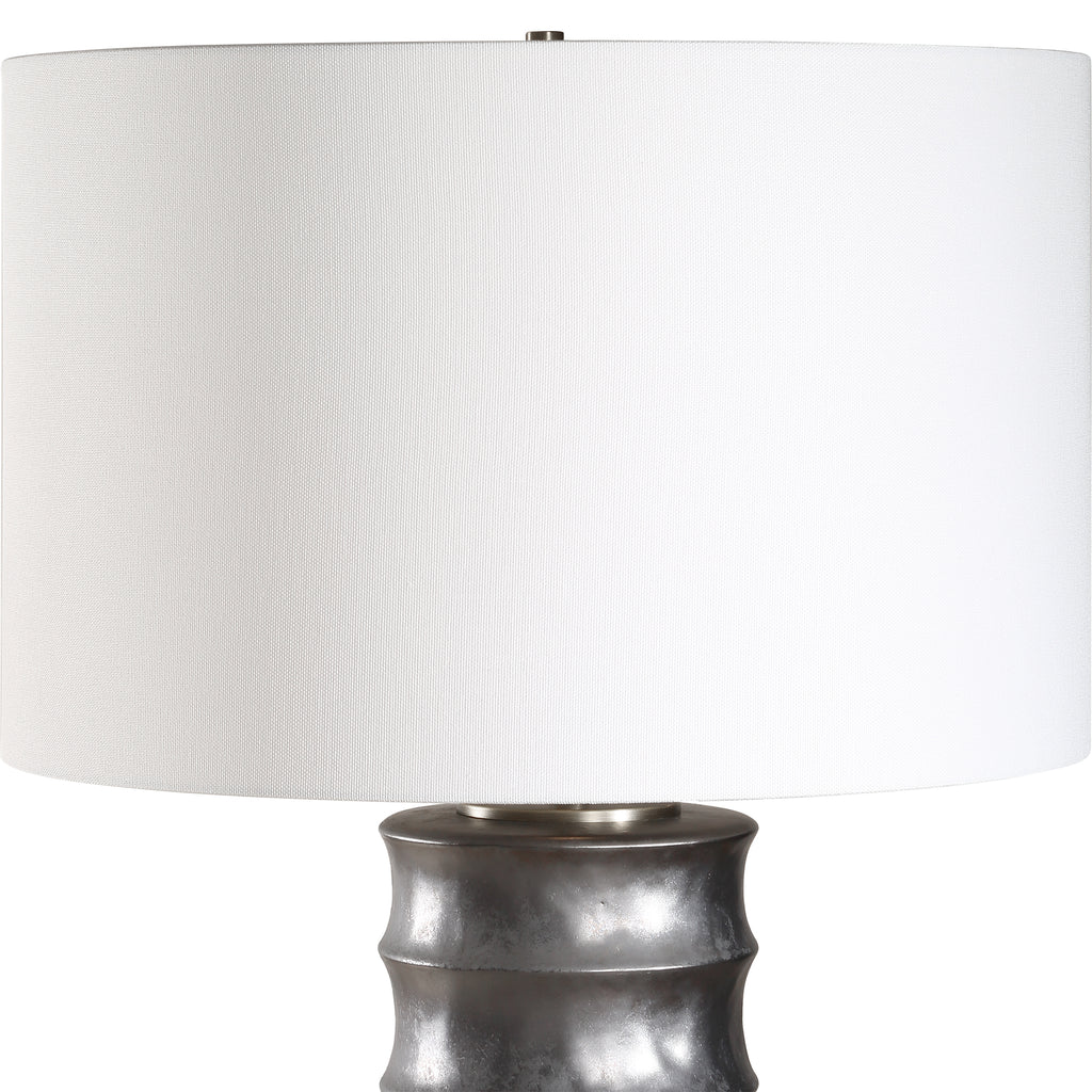 Material: Made from porcelain, the corvair table lamp features a timeless scalloped design finished in metallic dark bronze glaze, paired with brass plated details that adds depth and dimension to its sleek design.