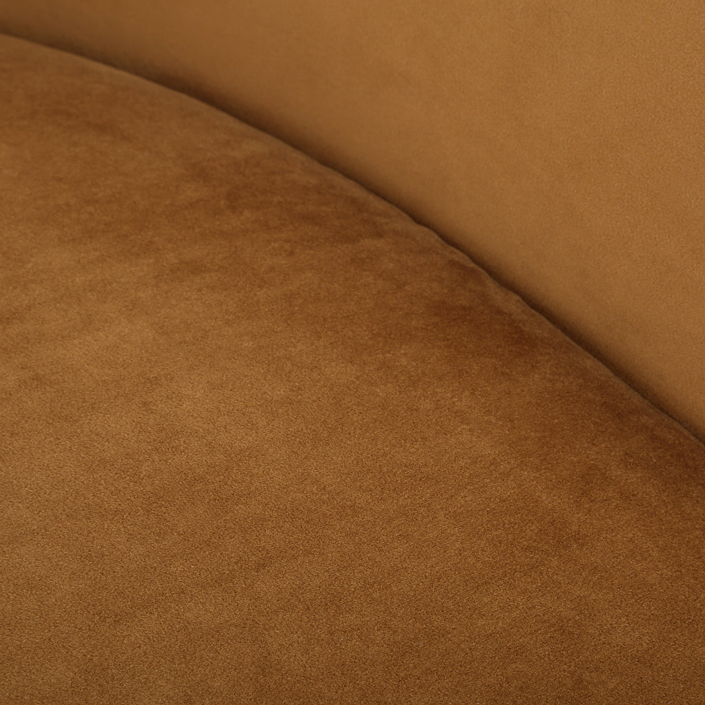 Material: A sleek and modern accent, featuring a wraparound back with dramatic waterfall arms and a swivel base. Fully upholstered in a hazelnut polyester velvet.