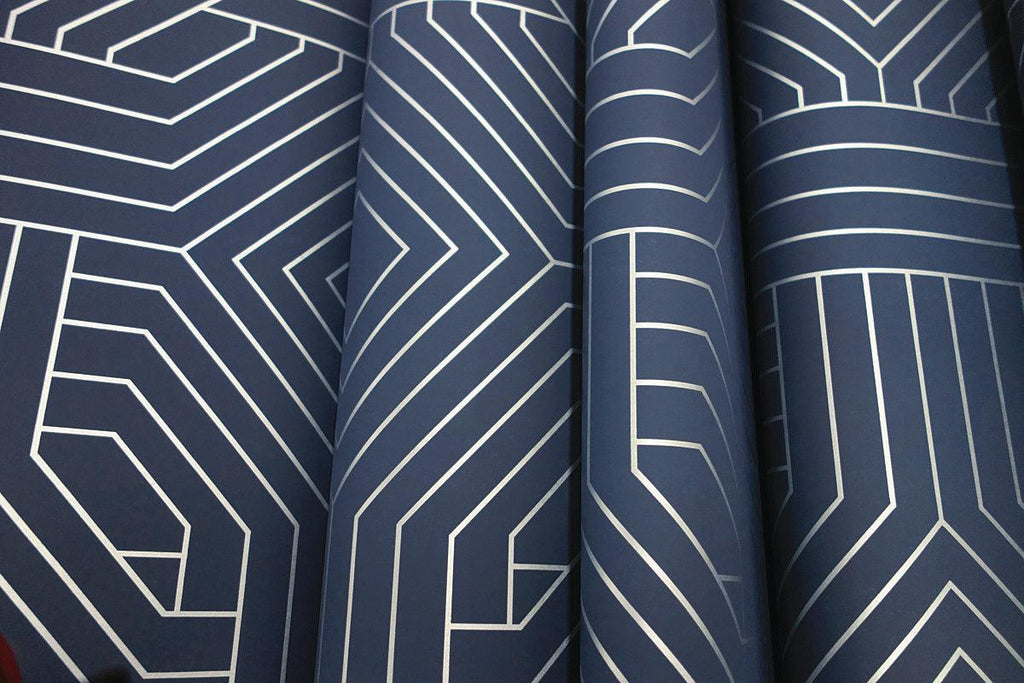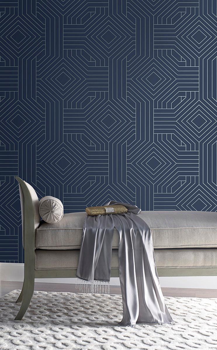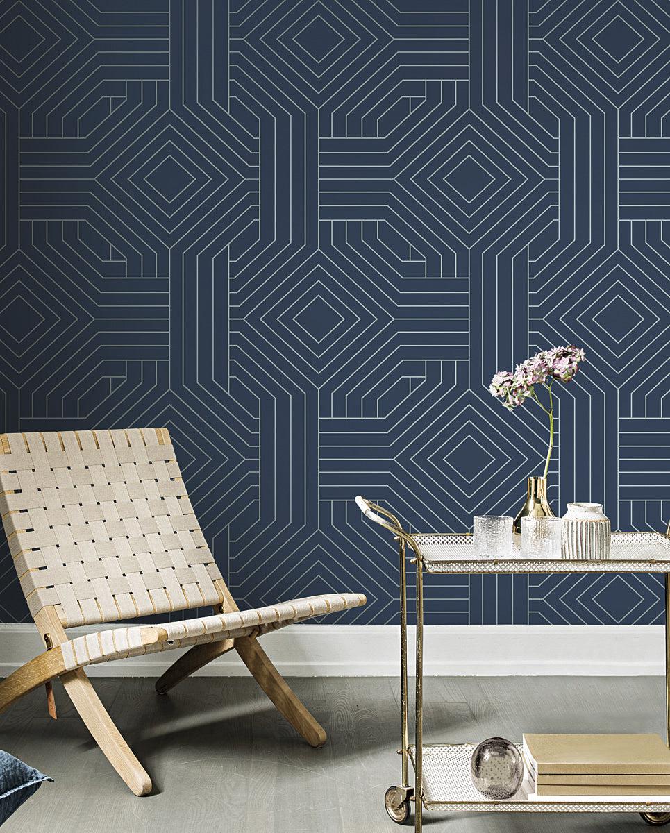 A network of gleaming metallic lines running vertically, diagonally, and horizontally forms a maze on a field of contrasting matte paper. This is Diverging Diamonds Wallpaper. This Diverging Diamonds Wallpaper measures approximately 27 inches wide by 27 feet long, covering About 60.8 square feet per roll. Durable and easy to remove from primed walls, this friendly to hang unpasted nonwoven wallpaper is created with a special blend of synthetic fibers, making it both easy to hang and tear resistant.