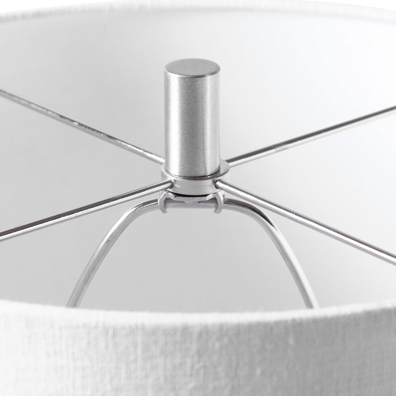 Material: Mid-century inspired table lamp has a fluted ceramic base with noticeable ribbed texture and is finished in a cream, light blue, indigo, and dark brown ombre glaze with brushed nickel plated accents.