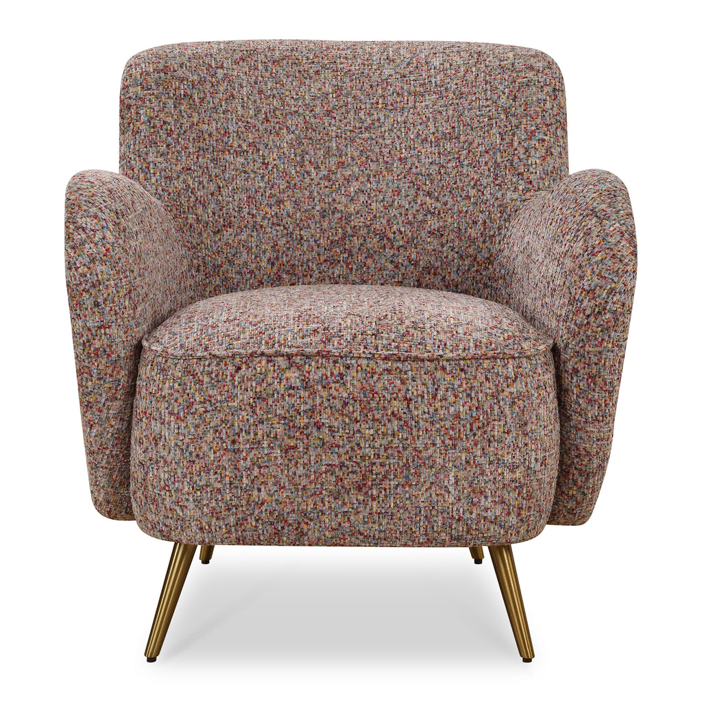Material: Destined to be the jewel of any room, with retro curves in a stunning textured chenille in autumnal confetti tones. Paired with brushed brass stainless steel tapered legs.