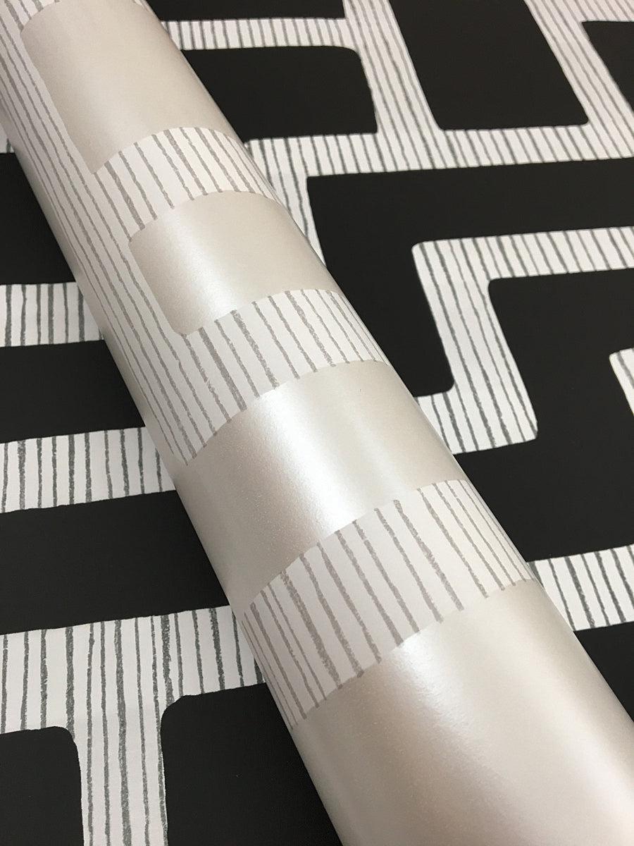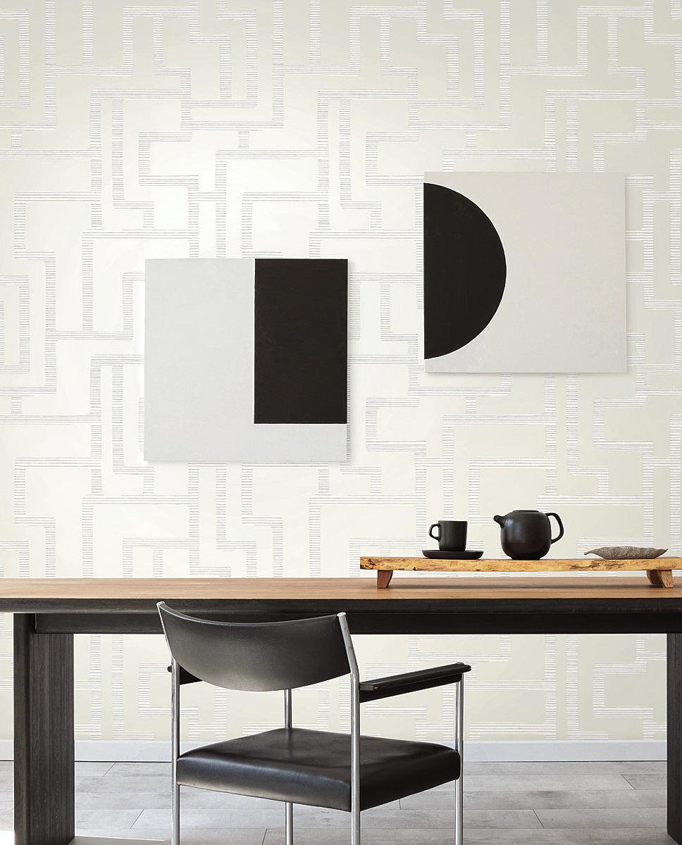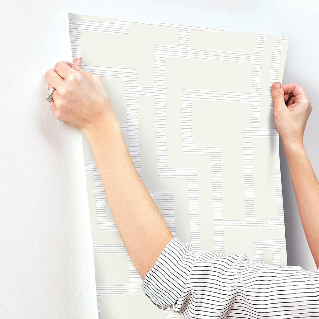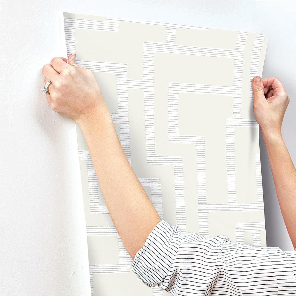 A perfect pairing of quintessential opposites, the Black and White Resource Library is a mix of the best in classic style and current trends curated into one timeless color compendium. Puzzle pieces made from geometric squares inspire pattern Graphic Polyomino’s intersecting horizontally striped pathways against matte and pearl color. This Graphic Polyomino Wallpaper measures approximately 20.5 inches wide by 33 feet long, covering About 56.4 square feet per roll. Manufactured on Sure Strip™, a unique high performance substrate, this ultra-easy removable wallpaper is guaranteed easy to install and easy to remove; simply use water to activate.