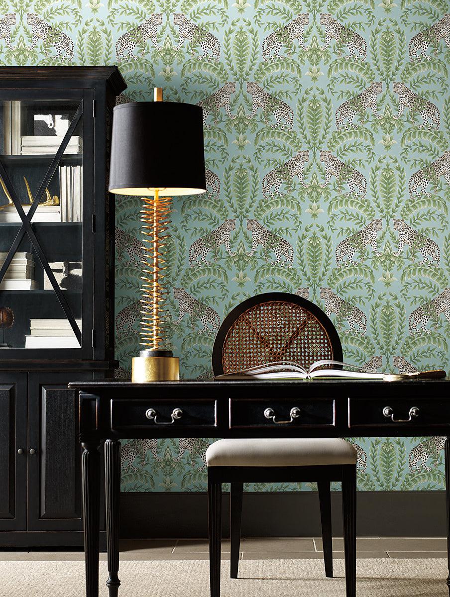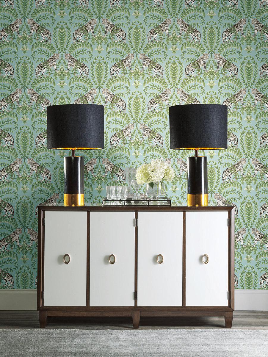 Jungle Leopard Wallpaper // Teal