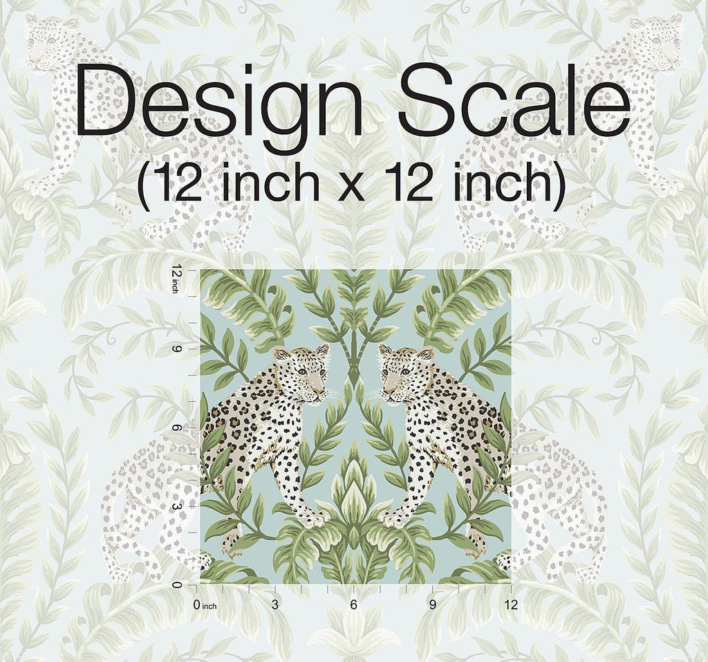 Ronald Redding wallcoverings artfully blend hertiage design with innovation to achieve the luxury of Modern Traditionalism. The 24 Karat collection exemplifies this blend of quiet sophisitcation and fine quality with the glamour of modern urban living. This traditionally inspired acanthus leaf damask features exotic leopards parading among the leaves. This Jungle Leopard Wallpaper measures approximately 27 inches wide by 27 feet long, covering About 60.8 square feet per roll. Pattern Jungle Leopard’s proud felines stand watch amidst lush acanthus leaf medallions in this fresh take on the exotic animal motifs of traditional style.