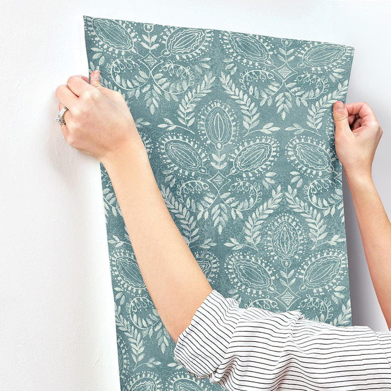 Laurel Damask Wallpaper // Teal