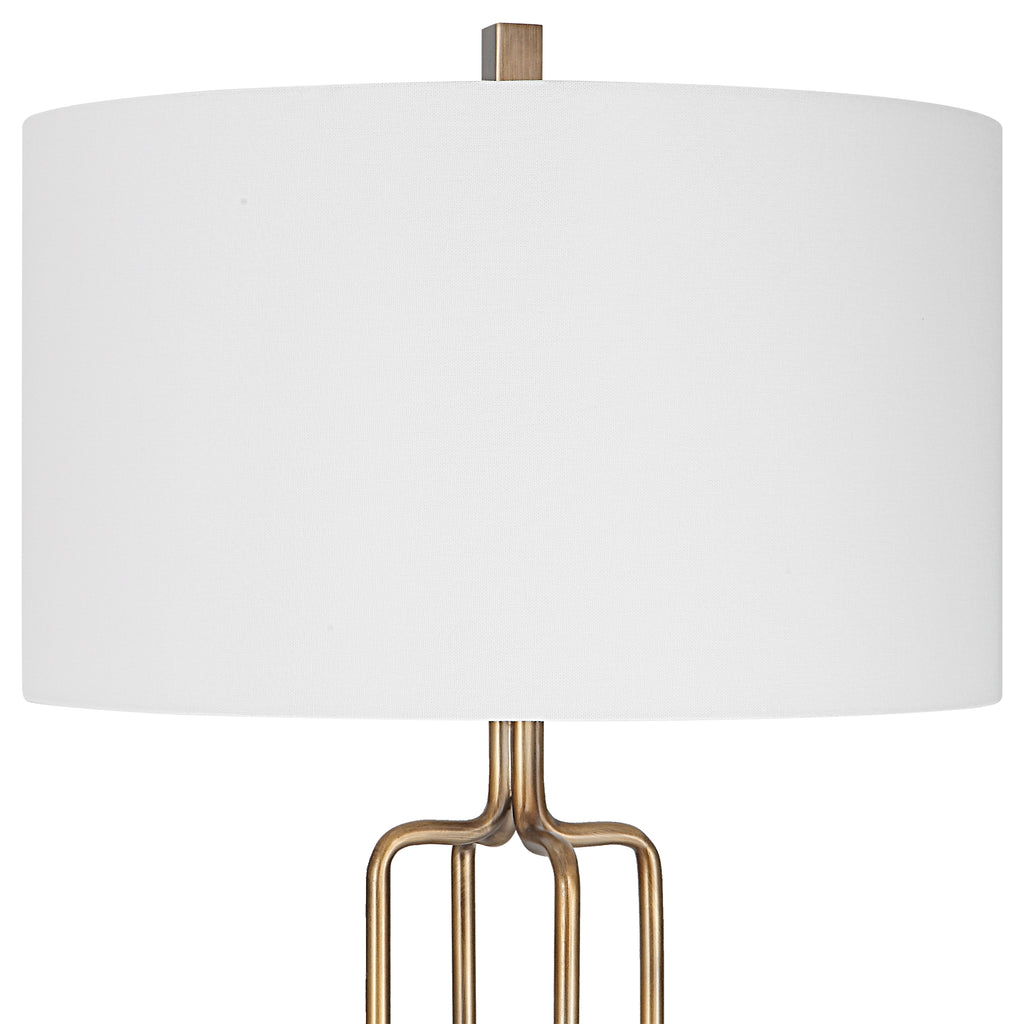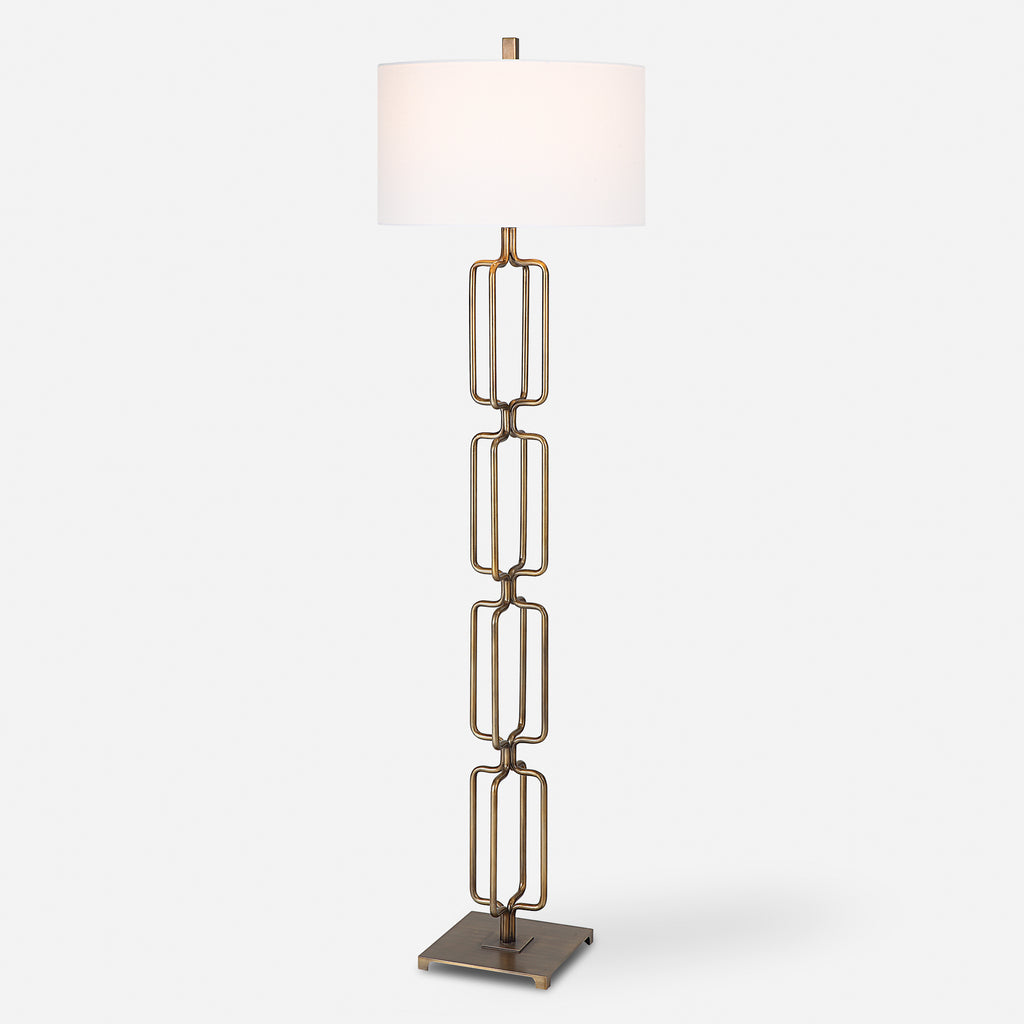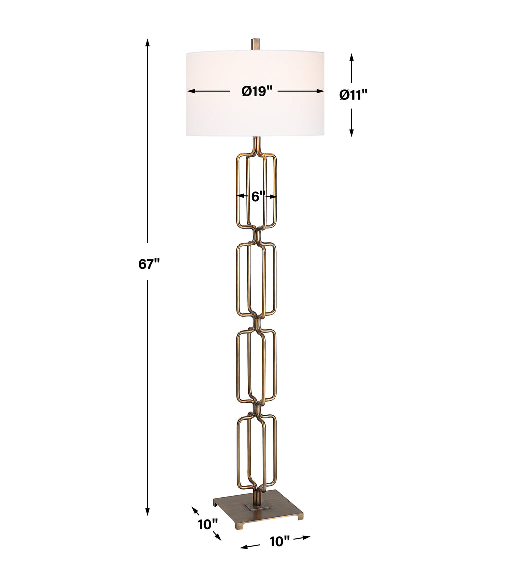Material: The link floor lamp features a unique design made from hand forged iron, finished in a heavily antique brushed gold.