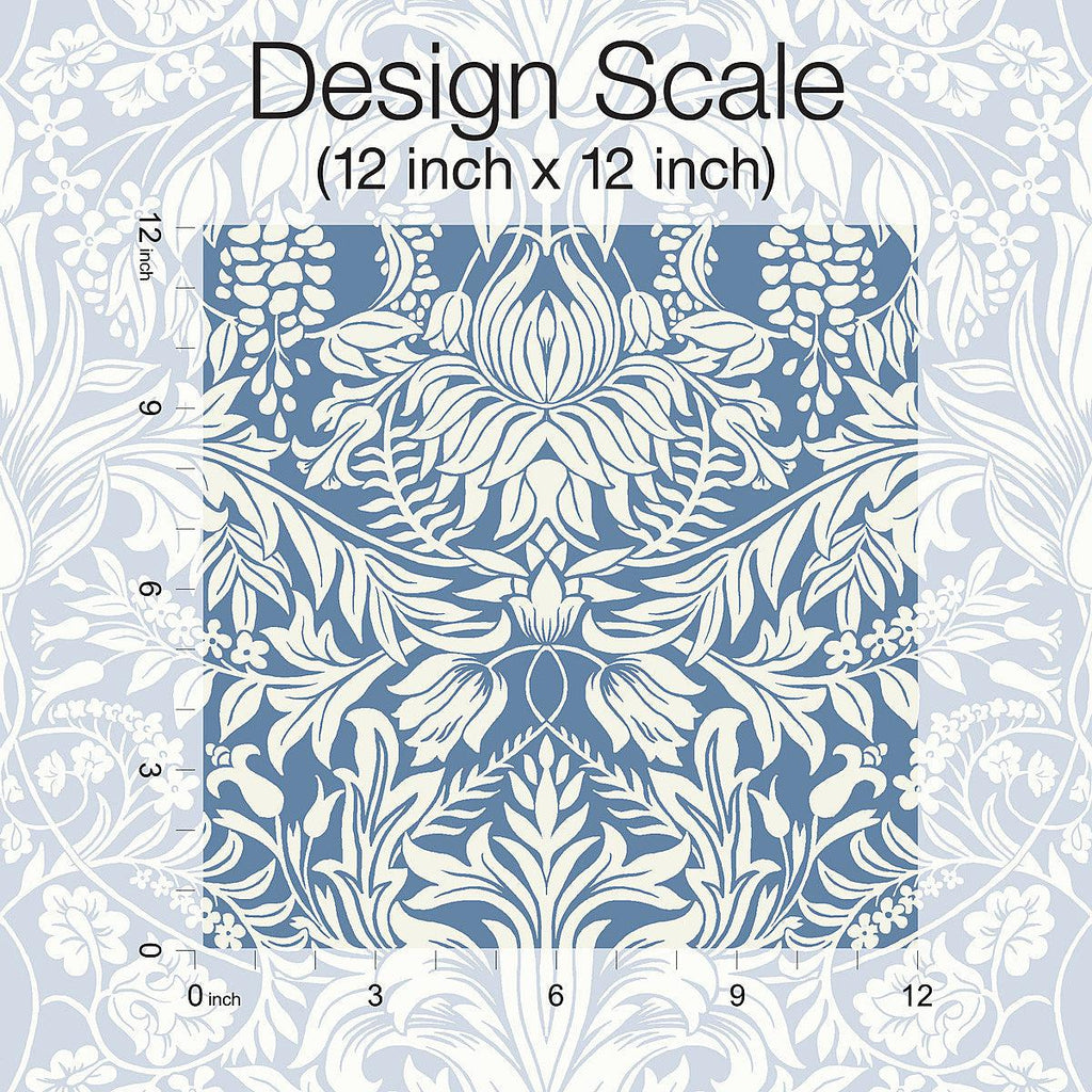 This Lockwood Damask Wallpaper measures approximately 27 inches wide by 27 feet long, covering About 60.8 square feet per roll.