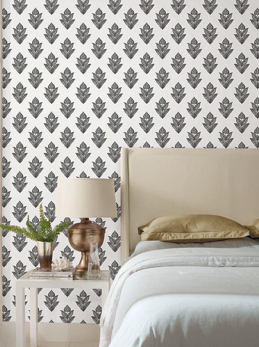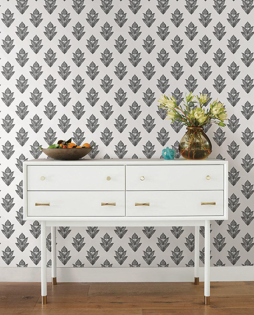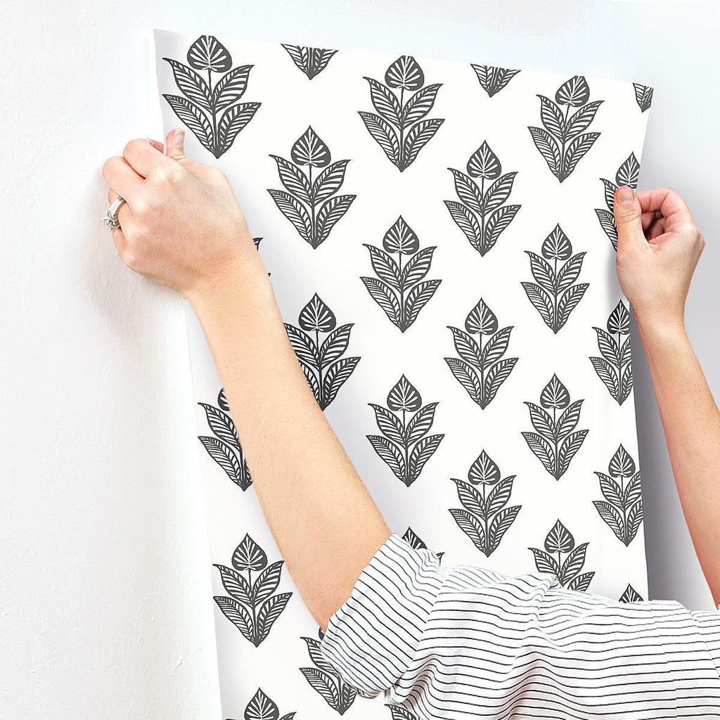 A perfect pairing of quintessential opposites, the Black and White Resource Library is a mix of the best in classic style and current trends curated into one timeless color compendium. Pattern Lotus Motif is derived from a stylized woodblock printed textile of the flowering aquatic lotus. This Lotus Motif Wallpaper measures approximately 27 inches wide by 27 feet long, covering About 60.8 square feet per roll. Manufactured on Sure Strip™, a unique high performance substrate, this ultra-easy removable wallpaper is guaranteed easy to install and easy to remove; simply use water to activate.