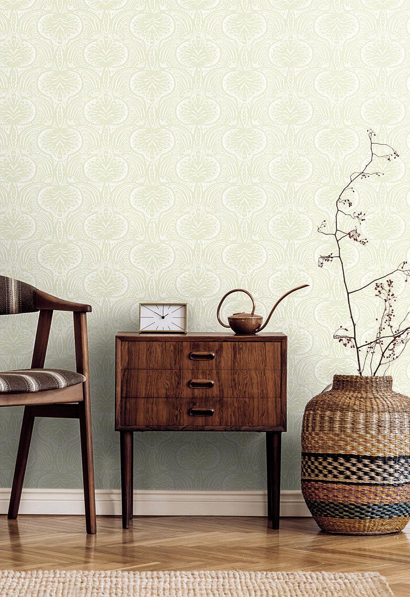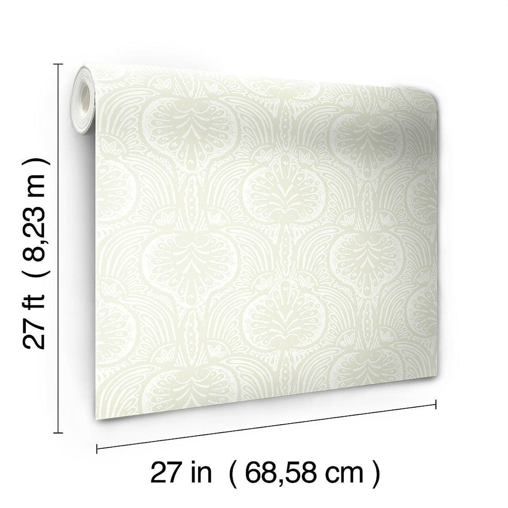 Bring the freedom and lifestyle of the world traveler home and experience the luxury of everyday adventure.        Palm fans, created with lofted inks, define the handcrafted block print style that is the centerpiece of pattern Lotus Palm. This Lotus Palm Wallpaper measures approximately 27 inches wide by 27 feet long, covering About 60.8 square feet per roll. Durable and easy to remove from primed walls, this friendly to hang unpasted nonwoven wallpaper is created with a special blend of synthetic fibers, making it both easy to hang and tear resistant.