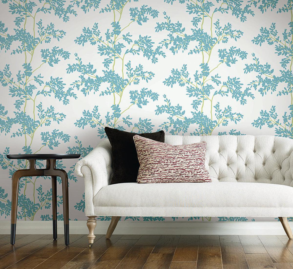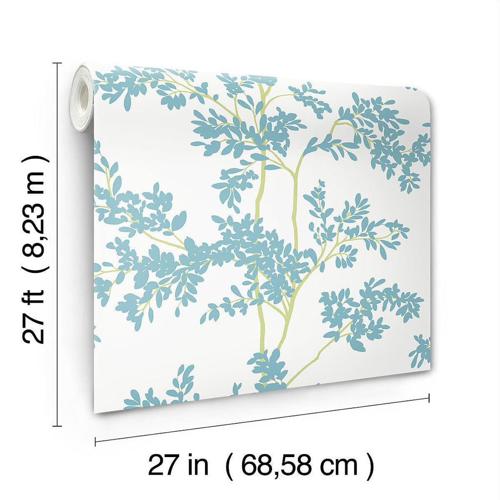 Created to cover the diversity and overarching themes which drive the home decor industry, the York Wallcovering brand creates an umbrella of distinctive design options for walls inspired by social, trend and fashion influences. Spindly branches laden with delicate yet densely-packed leaves climb forever upwards in pattern Lunaria Silhouette in aqua blue, green and white. This Lunaria Silhouette Wallpaper measures approximately 27 inches wide by 27 feet long, measuring approximately 60.8 square feet per roll. Florals speak the language of ever-evolving style with instant connection and iconic form that confidently compliments any space and every design signature.