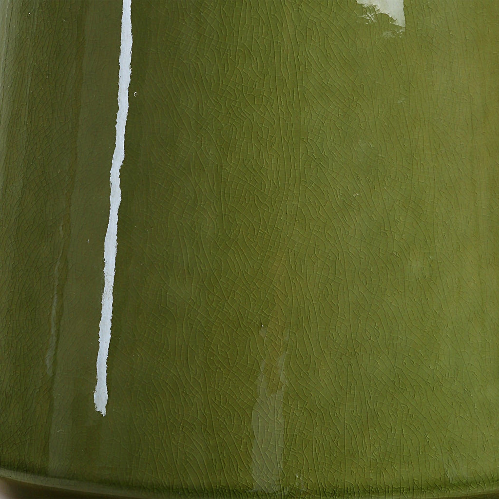 Material: The mendell table lamp features a tapered ceramic silhouette with a matching finial finished in a crackled moss green glaze complemented by plated antique brass details.