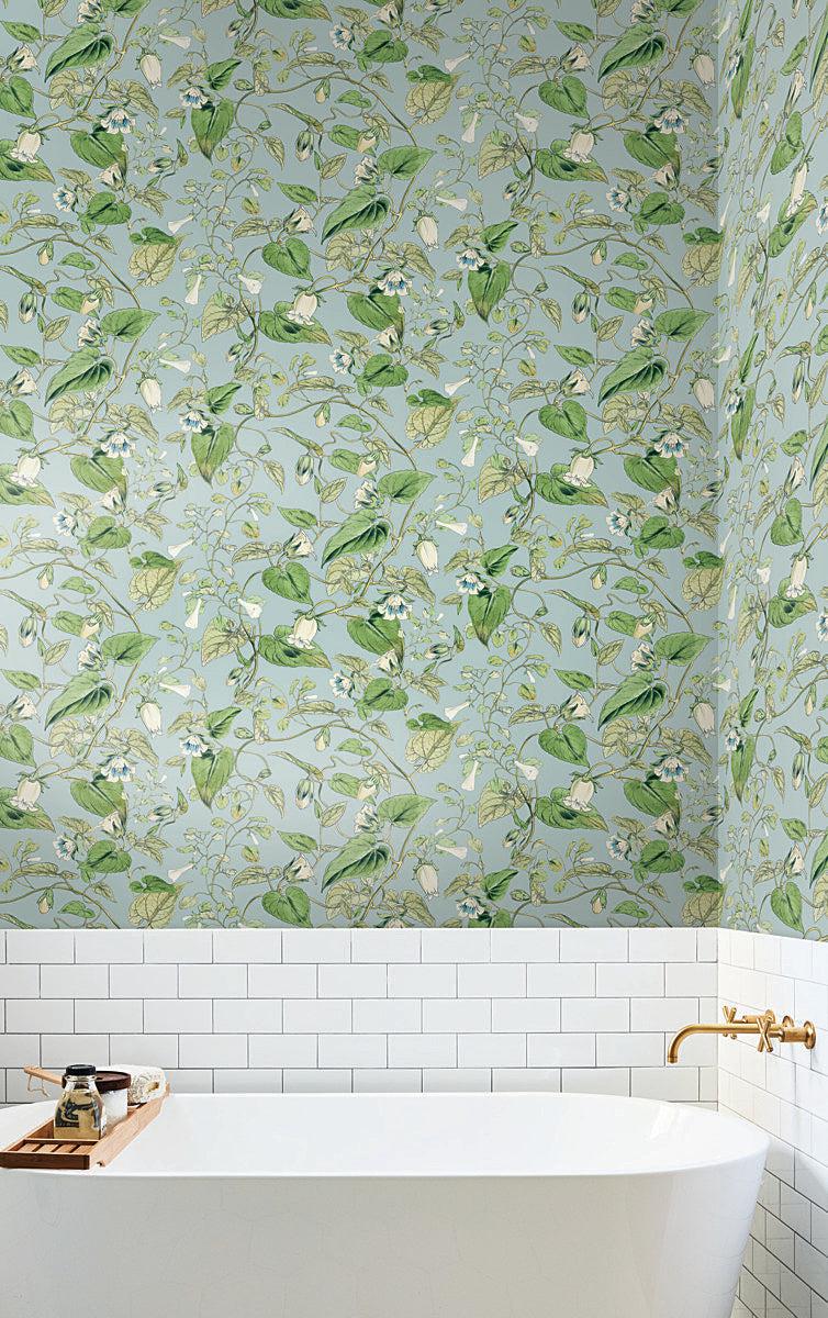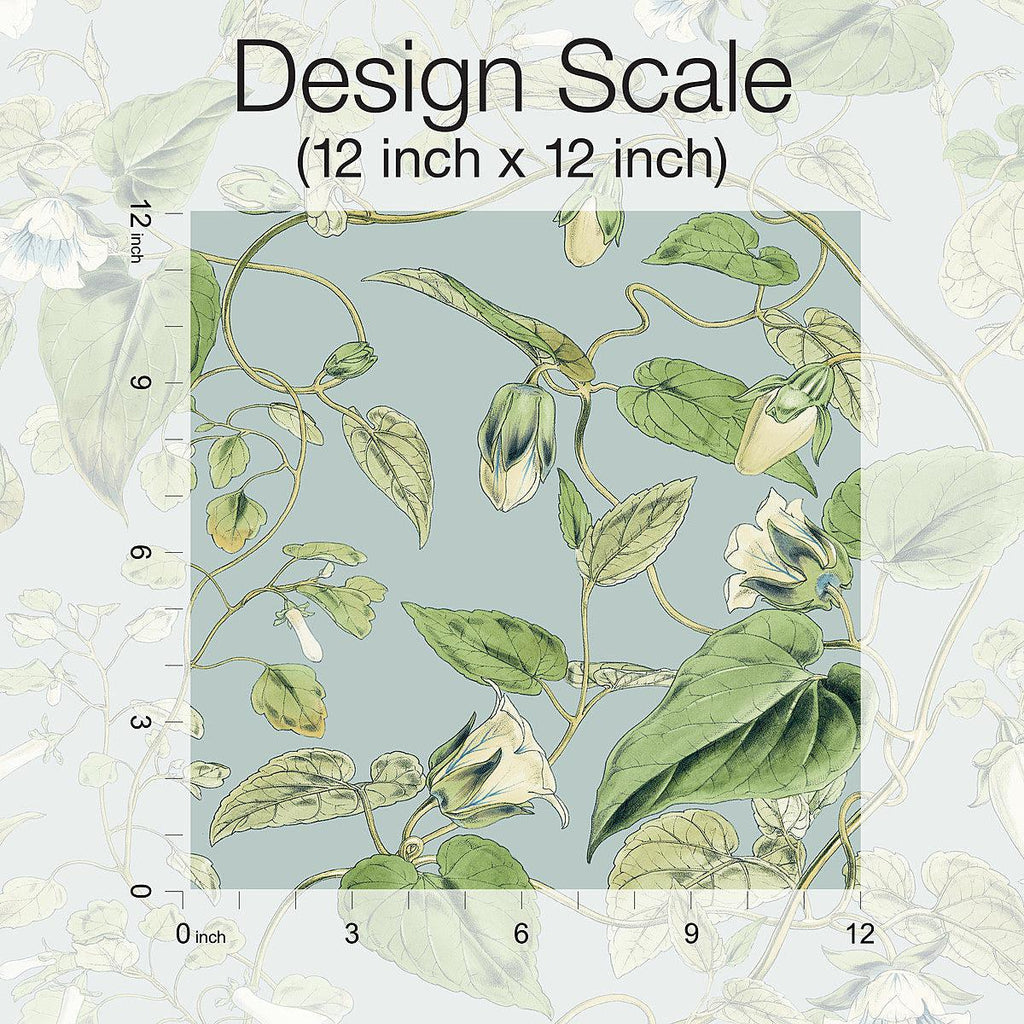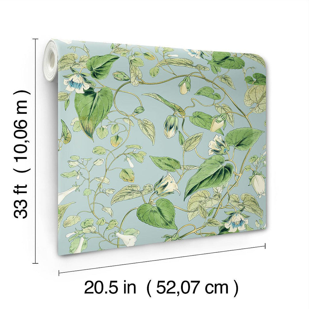 Created to cover the diversity and overarching themes which drive the home decor industry, the York Wallcovering brand creates an umbrella of distinctive design options for walls inspired by social, trend and fashion influences. Delicate buds are in the midst of unfurling along verdant, leafy vines in pattern Moon Flower showcase blues and greens on a blue base. This Moon Flower Wallpaper measures approximately 20.5 inches wide by 33 feet long, measuring approximately 56.4 square feet per roll. Florals speak the language of ever-evolving style with instant connection and iconic form that confidently compliments any space and every design signature.