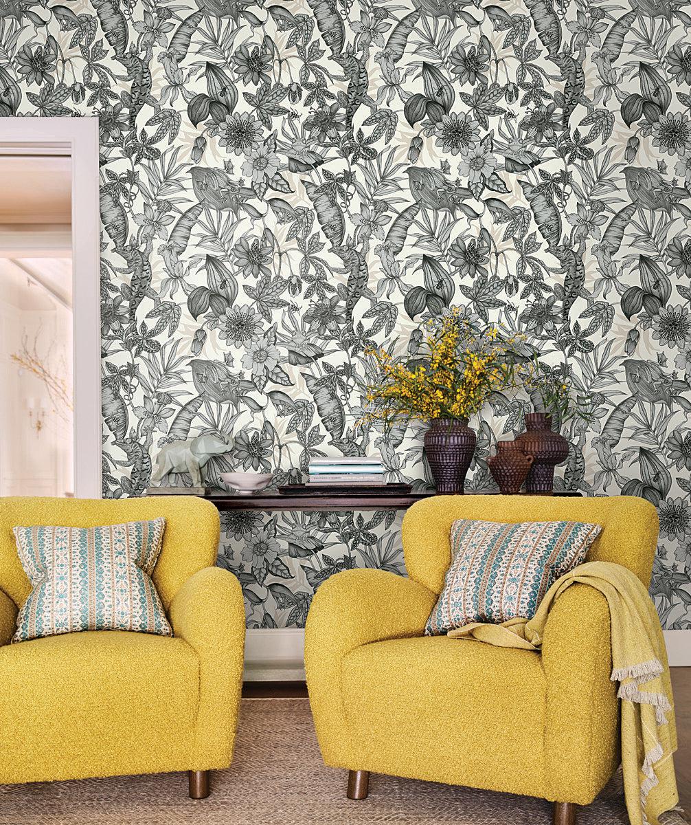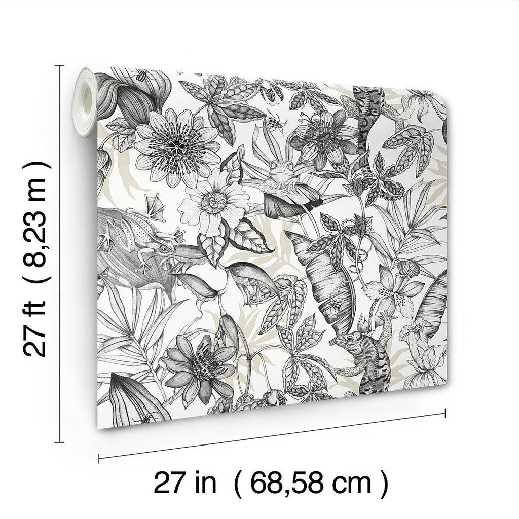 Created to cover the diversity and overarching themes which drive the home decor industry, the York Wallcovering brand creates an umbrella of distinctive design options for walls inspired by social, trend and fashion influences. The smaller denizens of the tropics climb amidst lush flowers and foliage in pattern Rainforest featured in a charcoal color with a white background. This Rainforest Wallpaper measures approximately 27 inches wide by 27 feet long, measuring approximately 60.8 square feet per roll. Florals speak the language of ever-evolving style with instant connection and iconic form that confidently compliments any space and every design signature.
