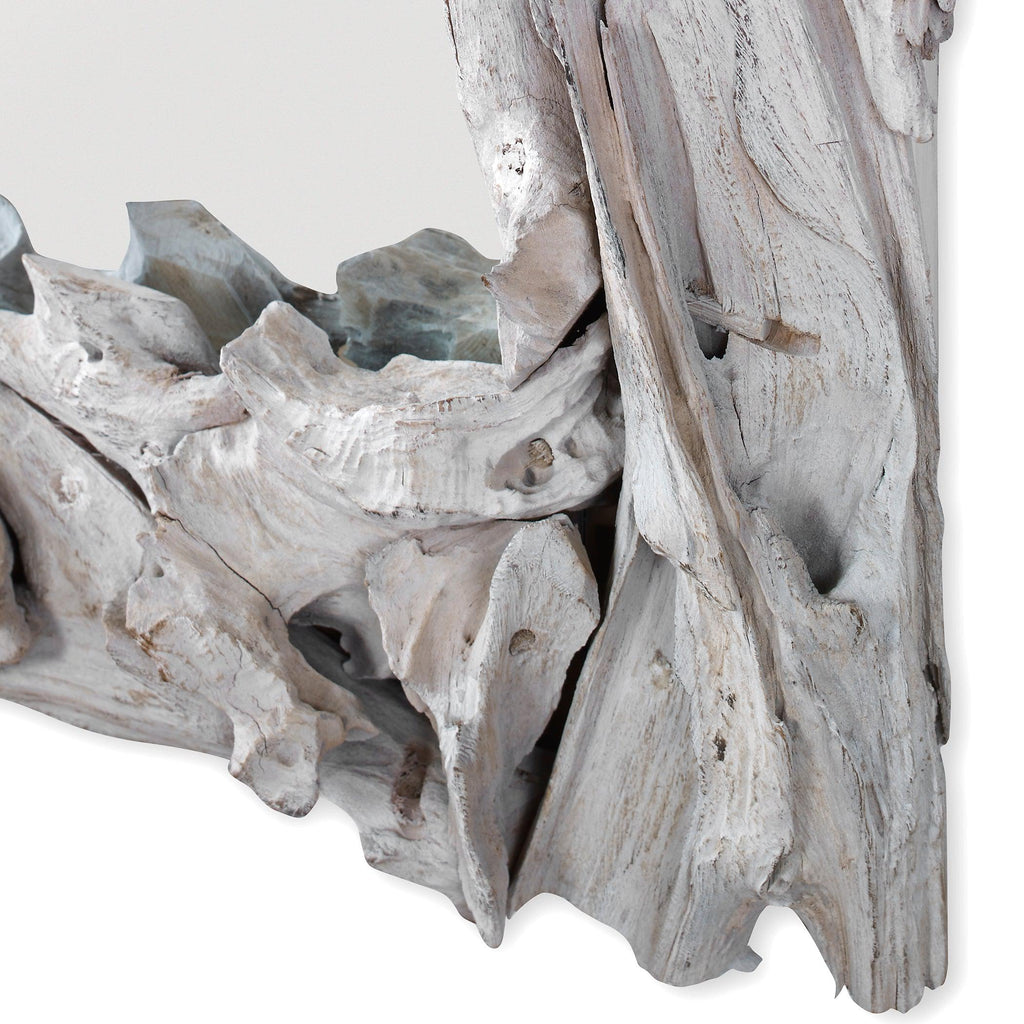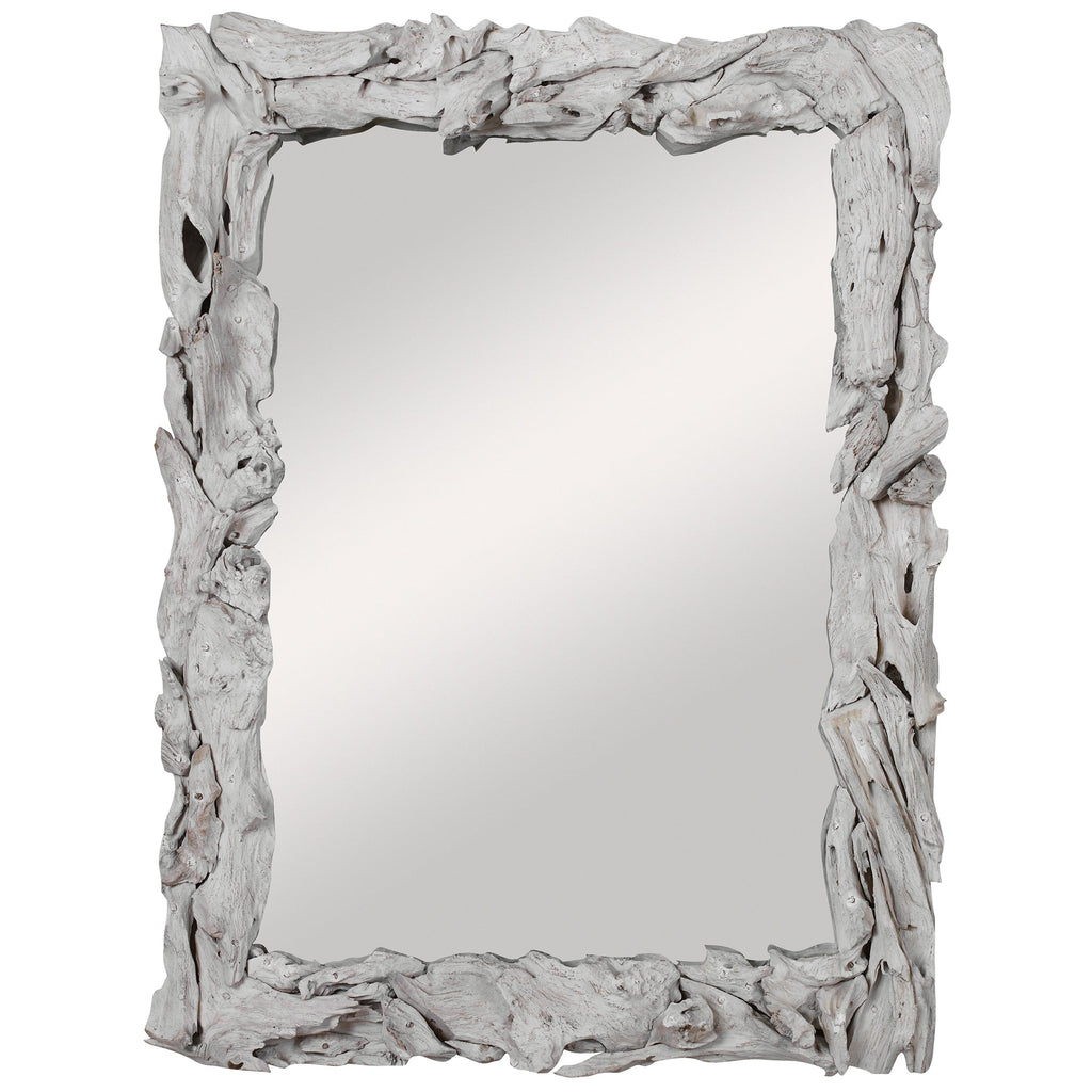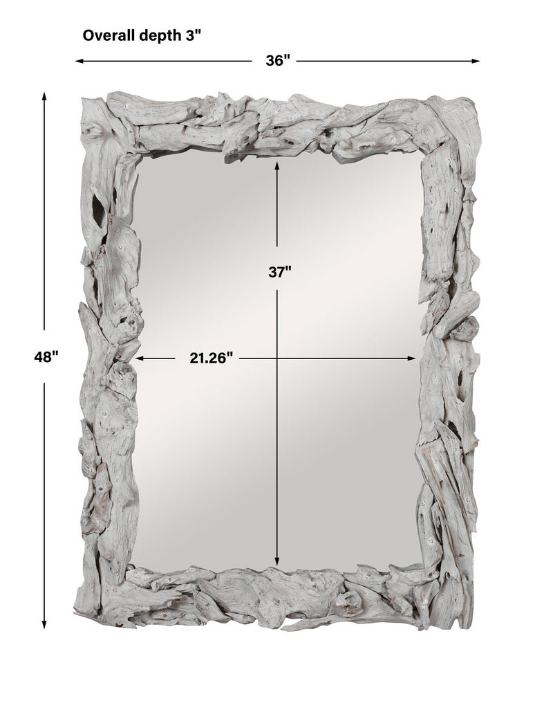 Material: This mirror is handcrafted from natural teak branches with a rustic whitewash finish. Solid wood will continue to move with temperature and humidity changes, which can result in small cracks and uneven surfaces, adding to its authenticity and character. May be hung horizontal or vertical.