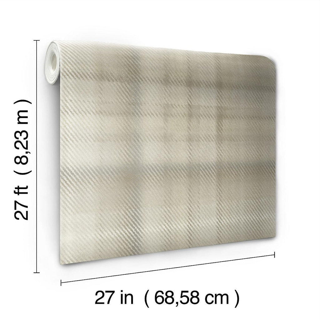Bring the freedom and lifestyle of the world traveler home and experience the luxury of everyday adventure.        Oversized plaid defines the look of woolen pattern Sterling Plaid’s warm and stately elegance. This Sterling Plaid Wallpaper measures approximately 27 inches wide by 27 feet long, covering About 60.8 square feet per roll. Durable and easy to remove from primed walls, this friendly to hang unpasted nonwoven wallpaper is created with a special blend of synthetic fibers, making it both easy to hang and tear resistant.