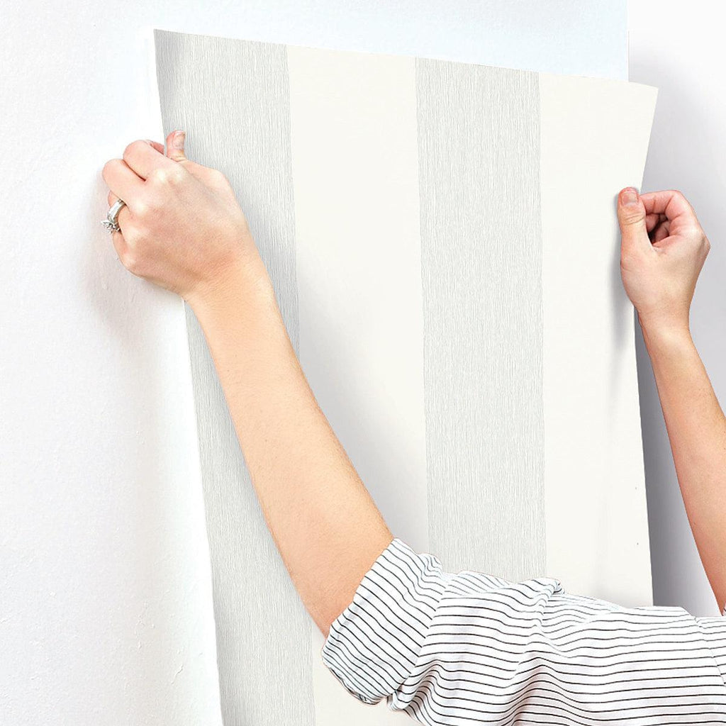 The Magnolia Home Artful Prints & Patterns wallpaper collection by Joanna Gaines from York Wallcoverings is genuinely fun featuring patterns that are unique, whimsical and playful; wallcoverings like these are an easy way to infuse your personality and style into your home and tell your family’s story. Breezy, softly carded threads create this easy-to-love, five-inch-wide canvas stripe. This Thread Stripe Wallpaper measures approximately 20.5 inches wide by 33 feet long, covering About 56.4 square feet per roll. Manufactured on SureStrip™, a unique high performance substrate, this ultra-easy removable wallpaper is guaranteed easy to install and easy to remove; simply use water to activate.