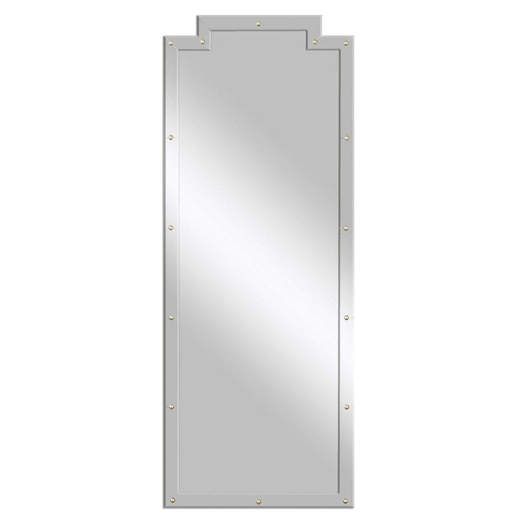 Material: The frame is constructed of smoked beveled mirrors accented with rounded antiqued gold nail heads.